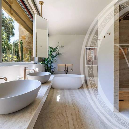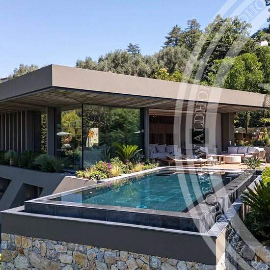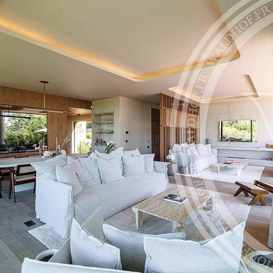 Contemporary villa with high-end finishes in a small private estate of 3 villas. Living area: 305 square meters. Land area: 1400 square meters. Living room - dining room - open kitchen. 4 en-suite bedrooms. 4 bathrooms. 1 separate guest house. 1 heated and secured swimming pool. Capacity: 10 people. ------------------- Ground Floor: Bedroom 1: 1 double bed, shower room with toilet. Bedroom 2: 1 double bed, shower room with toilet. Bedroom 3: 1 double bed, shower room with toilet. Laundry room. First Floor: Entrance Spacious living room, dini...