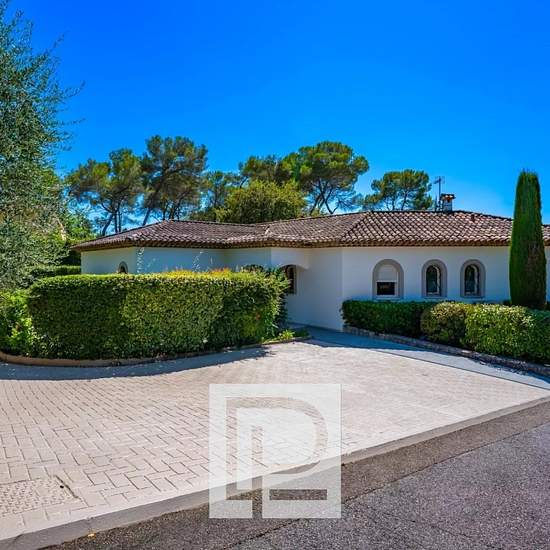 -EXCLUSIVITE- Située dans un domaine fermé et sécurisé, cette villa récente offre un cadre de vie paisible et recherché, à seulement 10 minutes de la Mougins School, proche de toutes commodités. Édifiée sur un terrain paysager parfaitement entretenu, la propriété séduit par son calme absolu, son confort moderne et sa configuration idéale pour une famille. D'une surface d'environ 320 m², elle propose un vaste séjour lumineux avec coin salon et salle à manger, ouvert sur les terrasses et le jardin, une cuisine toute équipée ainsi que trois sui...