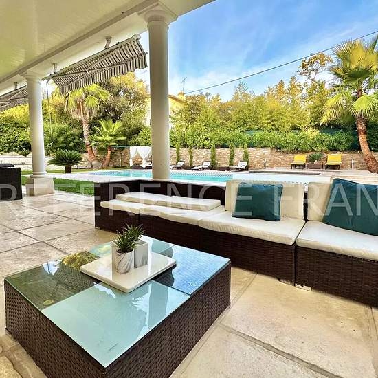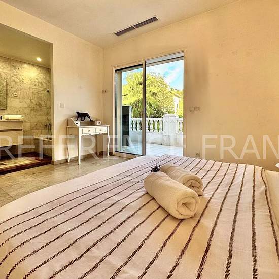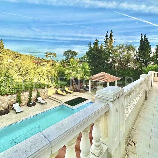 Idéalement située à pied du centre-villet, Spacieuse villa de Maître d’une surface de 250 m2 édifiée sur 1 000 m2 de terrain paysagé à l’abris des regards avec espace piscine, jacuzzi et pool-house Distribuée sur deux niveaux, elle propose : EN REZ DE JARDIN : - Une entrée cathédrale - Un toilette invité - Un séjour/salon TV - Une salle à manger - Une cuisine indépendante équipée - Chambre 1 : Suite avec penderie, salle de douche et accès jardin - Chambre 2 (indépendante) : Suite avec penderie et salle de douche avec accès jardin À L'ÉTAGE :...