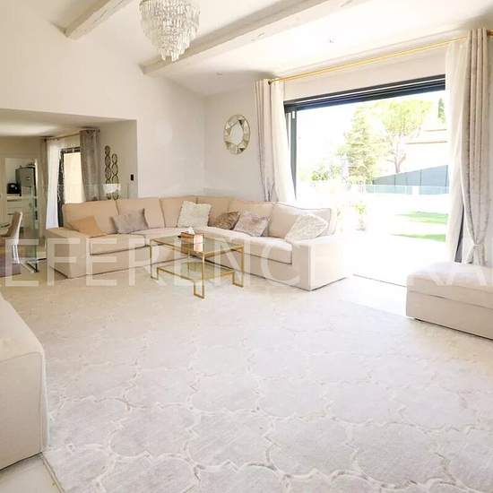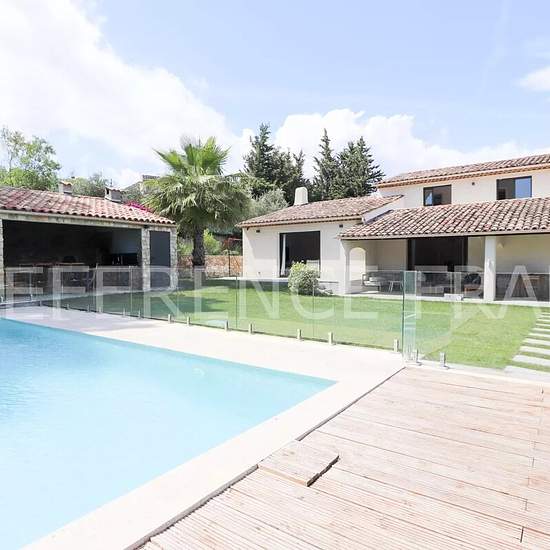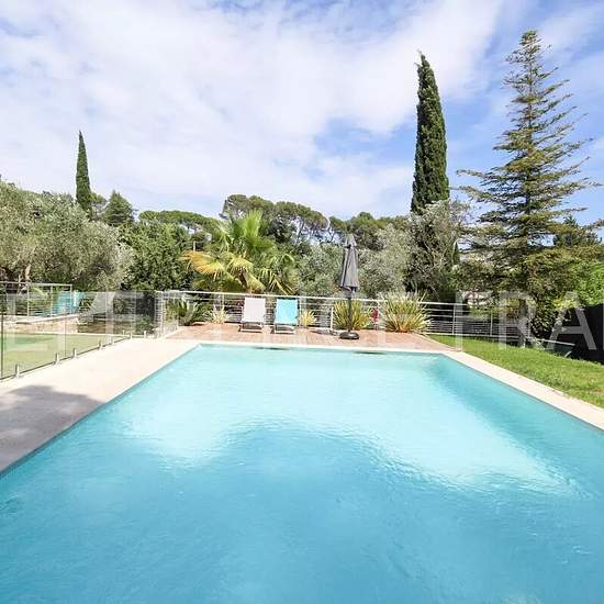 Votre référent immobilier local de Mougins (Sébastien MENAND) vous propose. A louer en résidence secondaire ou logement de fonction. 6500 Euros par mois du 1er novembre 2025 au 30 mai 2026. 7500 Euros par mois du 1er octobre 2025 pour 1 an renouvelable. Dans un quartier très résidentiel. Villa complètement rénovée avec de belles prestations. Villa de 220 m² habitables approx (total de 300 m² approx avec sous-sol total, garage et dépendances). 4 chambres et un studio indépendant. Terrain de 1500 m² approx. Piscine avec barrière en verre pour ...
