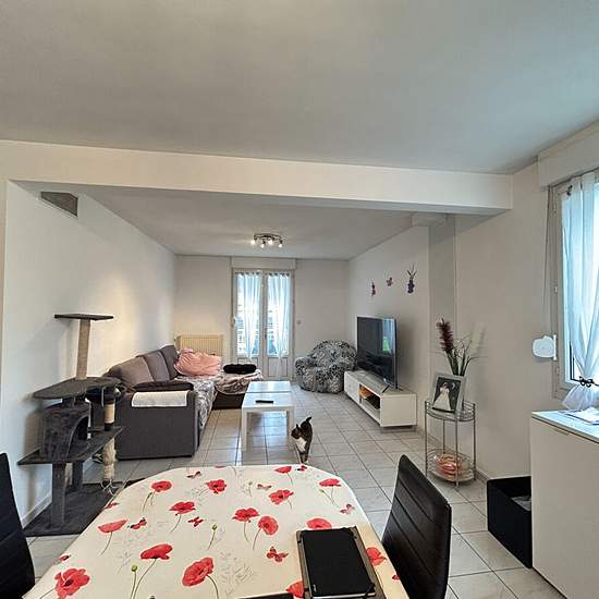 A Nogent-l'Abbesse, charmant village situé à 15 minutes de Reims, découvrez cette maison de 127 m² avec jardin à l'arrière. Elle se compose, au rez-de-chaussée, d'une entrée, d'une cuisine aménagée et équipée, d'un vaste double séjour ouvrant sur la terrasse, de deux chambres, d'une salle de bains, de WC séparés et d'une buanderie. A l'étage, vous trouverez deux grandes chambres lumineuses ainsi qu'un espace bureau. La maison dispose également d'un garage et d'un sous-sol total. Disponible dès le 6 Février NOGENT L'ABBESSE - 177 rue de Derri...