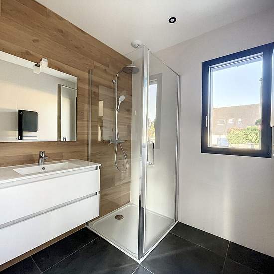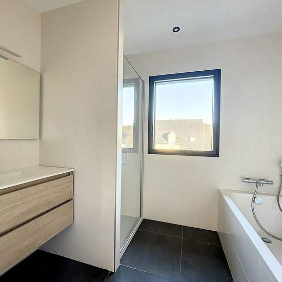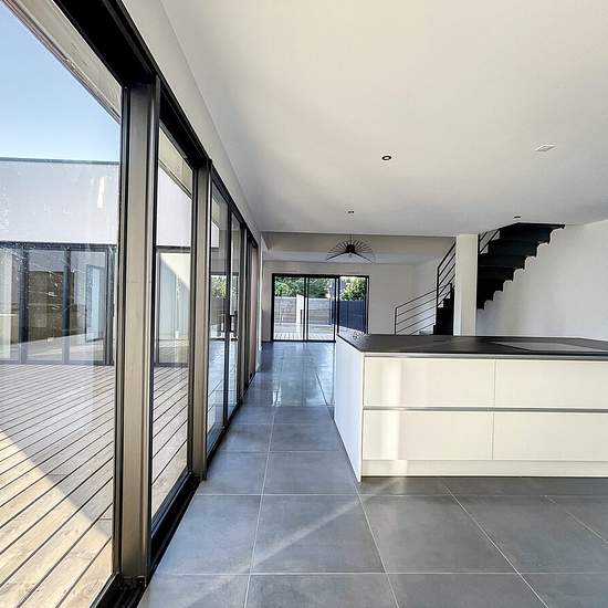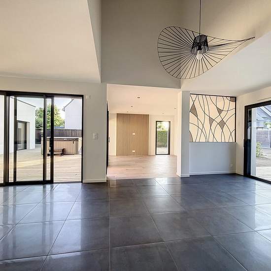 Noyal-Châtillon-sur-Seiche Dans un quartier résidentiel, découvrez cette magnifique maison d'architecte d'une superficie de 164m². Construite en 2023, cette propriété contemporaine offre raffinement et confort optimal. Elle est conçue avec des matériaux de qualité et des finitions haut de gamme. Au rez-de-chaussée, un spacieux salon lumineux se marie harmonieusement avec le séjour et le patio, créant un espace de vie convivial et chaleureux. La cuisine équipée offre un design moderne et fonctionnel. Une chambre, une salle d'eau et un WC comp...