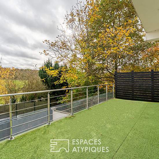 A propos de ce bien Cette superbe maison contemporaine de 170 m² est située dans le secteur prisé d'Orgeval. Sa composition en duplex inversé offre au rez-de-chaussée une entrée qui dessert quatre belles chambres ouvertes sur le jardin de 75 m², dont une suite parentale avec sa salle d'eau et toilettes, une grande salle de bains avec douche, un spacieux dressing, un débarras ainsi qu'un toilette indépendant. A l'étage se découvre la pièce de vie avec l'espace salon, salle à manger et la cuisine ouverte avec îlot central dînatoire, l'ensembl...