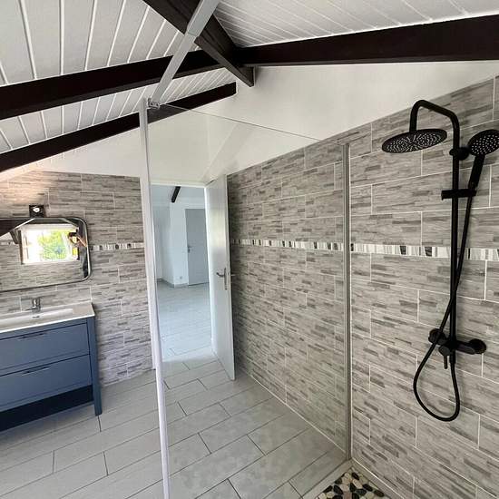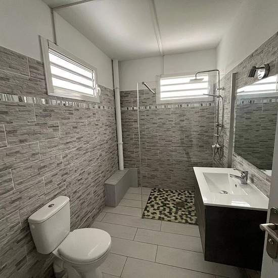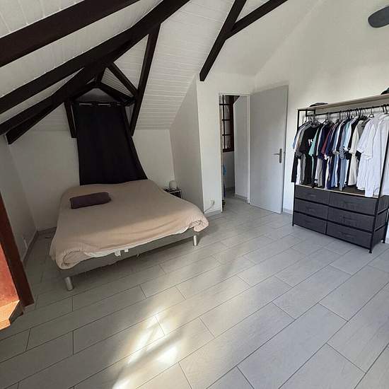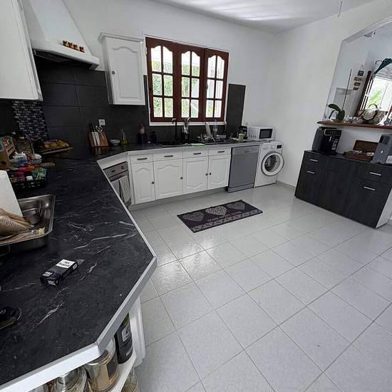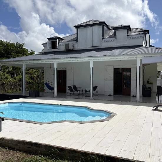 Jolie villa T6 avec piscine à Arnouville,sans odeur de sargasse, à proximité de la Z.I. de Jarry et des commerces, au calme, comprenant : 1 cuisine aménagée et semi équipée (Plaque, hotte, four, frigo), 1 séjour climatisé, 1 bureau ou chambre, 1 dégagement, 1 salle d'eau avec wc , 1 chambre climatisée. A l'étage : 1 dégagement, 2 chambres climatisées, 1 suite parentale climatisée, avec sa salle d'eau et wc, attenante, 1 buanderie avec WC, lavabo et lave-linge. 1 terrasse, 1 piscine, 1 abri voiture, jardin clôturé avec portail électrique. Sur...