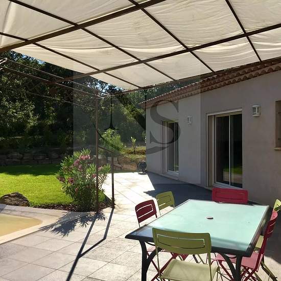 Le groupe Nicolas Staes vous propose à la location à l’année sur Peynier Village provençal protégé, cette villa contemporaine de haut standing de plain-pied d'une surface de 250 m², construction récente 2012 dans un très bel environnement.Très beau jardin paysagé de 2 000 m² parfaitement aménagé denrochements et d'essences exotiques, entièrement clôturé, avec une magnifique piscine aux formes libres .Grande terrasse de 100 m² exposée au sud, dotée d’une pergola en fer forgé avec vue panoramique sur la piscineLa villa comprend 5 chambres et 3...