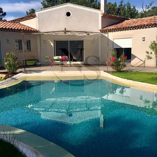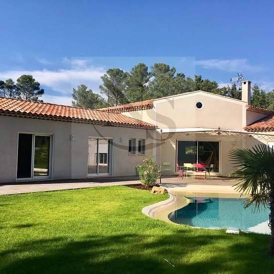 Le groupe Nicolas Staes vous propose à la location à l’année sur Peynier Village provençal protégé, cette villa contemporaine de haut standing de plain-pied d'une surface de 250 m², construction récente 2012 dans un très bel environnement.Très beau jardin paysagé de 2 000 m² parfaitement aménagé denrochements et d'essences exotiques, entièrement clôturé, avec une magnifique piscine aux formes libres .Grande terrasse de 100 m² exposée au sud, dotée d’une pergola en fer forgé avec vue panoramique sur la piscineLa villa comprend 5 chambres et 3...