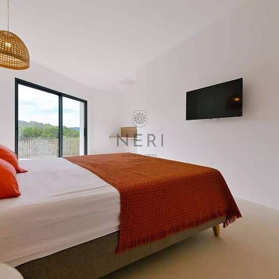 Découvrez cette villa d'architecte nichée sur la Rive Sud du Golfe d'Ajaccio, offrant une vue imprenable sur le golfe. Cette résidence d'exception s'étend sur environ 250 m² sur un terrain de 1,700 m², garantissant un confort de vie. L'architecture contemporaine de la villa est sublimée par de vastes baies vitrées à galandage, laissant entrer la lumière naturelle. La villa offre une très grande pièce à vivre de plus de 80 m², comprenant une cuisine moderne et entièrement équipée, un salon TV, et un espace repas intérieur. Cet espace convivia...