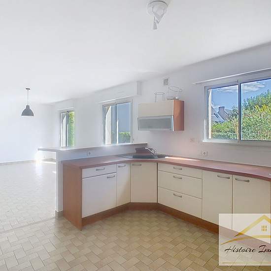 PLOUZANE - Grande maison familiale avec vie de plain pied. Venez découvrir à proximité de Brest cette maison familiale de 162 m2 surface au sol située au fond d'une impasse à 10min de Brest. Le bien comprend au rez-de-chaussée un grand séjour de plus de 46 m2 traversant donnant accès à un jardin, une cuisine ouverte équipée d'un four, d'une hotte et d'une plaque de cuisson, un bureau, douche ainsi qu'un WC indépendant. A l'étage 4 chambres dont une très spacieuse de 13,98 m2 ainsi qu'une salle de bains et un WC séparé. Un grand garage attena...
