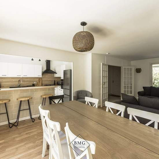 Découvrez cette belle maison meublée de 150M2 située dans un quartier résidentiel calme et recherché de Serris, à proximité immédiate du Val d’Europe, des commerces, écoles et transports. Caractéristiques : Surface généreuse avec 4 chambres confortables dont 1 suite parentale avec dressing. 2 salles de bains Cuisine entièrement équipée Grand séjour lumineux Garage privatif Jardin de 400M2 avec une terrasse donnant accès au salon et à la cuisine. Location disponible au mois ou à l’année Idéal pour les familles, les professionnels en mobilité ...