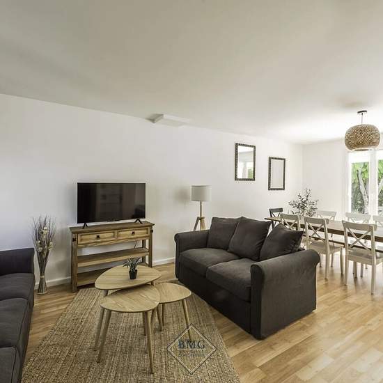 A propos de ce bien Découvrez cette belle maison meublée de 150M2 située dans un quartier résidentiel calme et recherché de Serris, à proximité immédiate du Val d’Europe, des commerces, écoles et transports. Caractéristiques : Surface généreuse avec 4 chambres confortables dont 1 suite parentale avec dressing. 2 salles de bains Cuisine entièrement équipée Grand séjour lumineux Garage privatif Jardin de 400M2 avec une terrasse donnant accès au salon et à la cuisine.