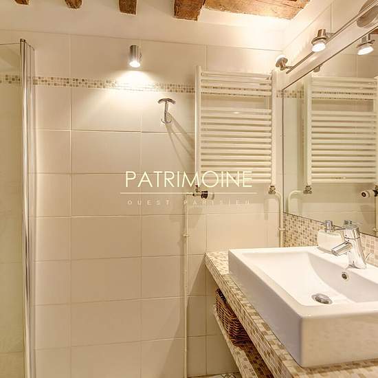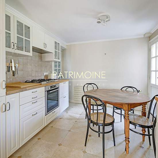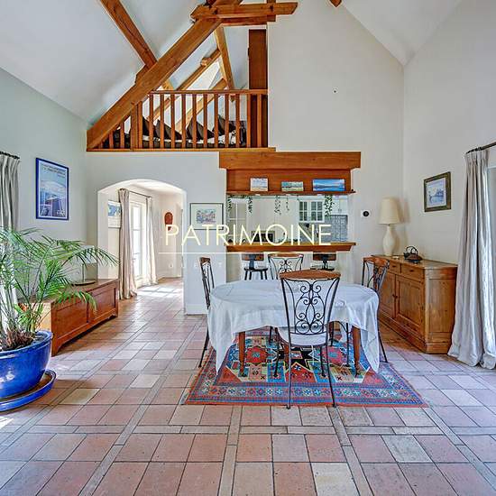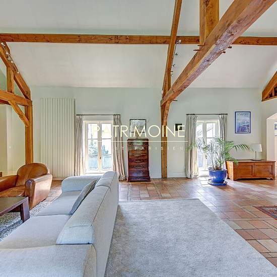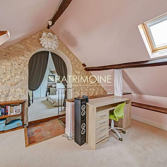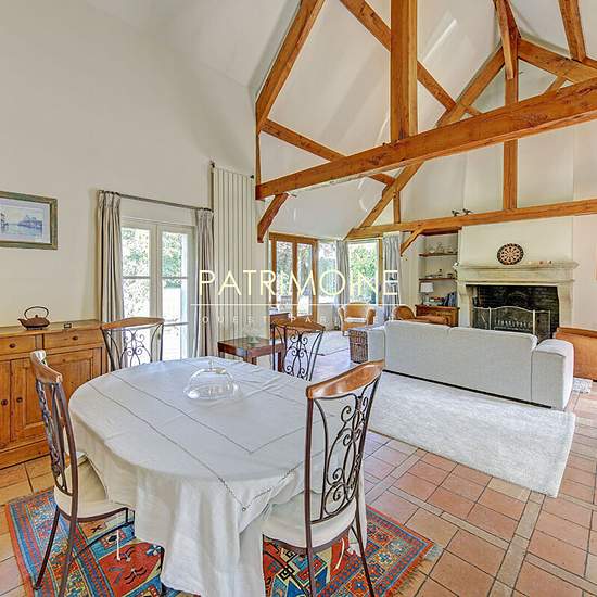 Idéalement située en centre-ville, avec ramassage scolaire pour écoles et Lycée International de Saint Germain en laye, à 5 min de la gare SNCF de Saint Nom en direction de Paris Saint Lazare, secteur recherché et au calme absolu, Jolie maison ancienne meublée de 1800 offrant 171.37 m² loi Boutin soit 240 m² au sol sur 300 m² de terrain offrant : Au rez-de-chaussée : Entrée, Double réception avec 6 M de hauteur sous plafond avec cheminée donnant sur jardin, cuisine indépendante aménagée équipée dînatoire, une chambre, une salle de douches av...