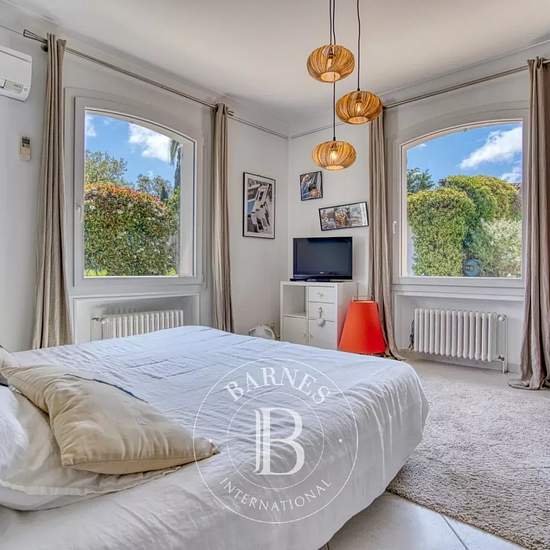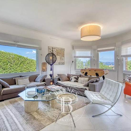 Située dans un domaine calme à proximité du centre du village, cette villa offre une vue sur la mer. Elle se compose d'un grand salon, d'une cuisine équipée, d'une chambre de Maître, de trois chambres en suite ainsi que d'un espace cinéma et billard. En extérieur, un joli jardin, une belle terrasse attenante à la cuisine ainsi qu'une piscine. Équipements : Climatisation, WIFI, alarme, coffre-fort, places de parking. Services inclus : Ménage, linge de maison, linge de piscine et service de conciergerie BARNES personnalisé. « Les informations ...