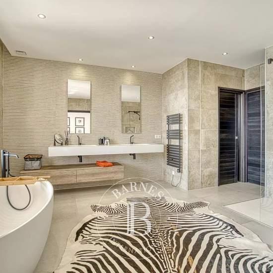 * Villa Lauriane * Located in a quiet, secure estate in the commune of Sainte-Maxime, this new contemporary villa of 325 m² offers panoramic sea views. Featuring luxurious finishes, the property comprises an open-plan kitchen opening onto a beautiful, light-filled living area overlooking the garden and the pool. It also offers four en-suite bedrooms, each with its own shower room, an office, a laundry room, a pantry off the kitchen, and a garage. Outside, a heated pool and a large garden filled with Mediterranean plantings ensure a private, ...