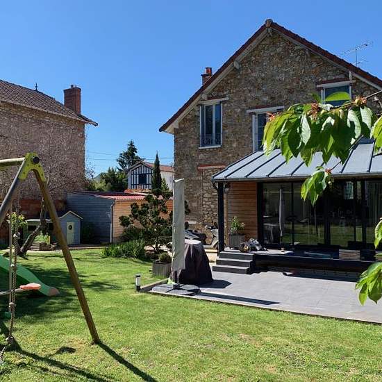 TAVERNY, dans quartier pavillonnaire, à 10 minutes du centre ville et de la gare, coup de coeur assuré pour cette magnifique meulière édifiée sur 700 m² de terrain. Elle vous offre au RDC une entrée, un séjour double, une cuisine aménagée et équipée donnant sur une agréable terrasse, une chambre avec dressing et salle d'eau, un wc. A l'étage, 3 chambres, salle de bains avec douche et baignoire, wc. Sous sol partiel. Garage. La visiter c'est l'adopter.