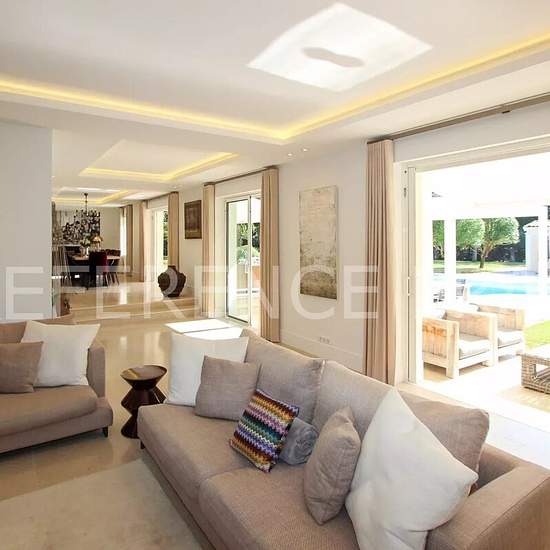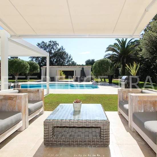 Votre référent immobilier local de MOUGINS (Sébastien MENAND) vous propose. AU CALME ABSOLU. VALBONNE. Accès rapide to ICS, CIV et british Mougins school. Somptueuse villa aux prestations haut de gamme située dans un domaine privée à 5 minutes du village de Valbonne et à pied des commerces. La villa fait fait 250 m2 habitables approx (300 m² au total) et a un magnifique terrain plat paysager de 3 600 m2 avec piscine chauffée, poolhouse et terrain de pétanque. Distribuée sur deux niveaux, elle offre : une entrée desservant un spacieux espace ...
