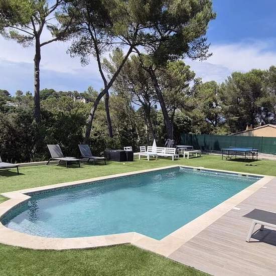 A propos de ce bien Superbement située entre Antibes et Cannes, à 1km seulement du v-centre de Vallauris, nichée dans un écrin de verdure au sein du quartier très résidentiel des Issarts, cette très belle villa tout confort est le lieu de vie idéal pour une famille. D'une surface habitable de 150m2, la maison dispose, sur 2 niveaux, de 4 chambres et un bureau/dressing. Au rdc se trouve la chambre parentale avec sa salle de bains, ainsi que le beau séjour avec cuisine à l'américaine tout équipée et ouvert sur la terrasse. A l'étage vous trou...