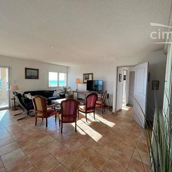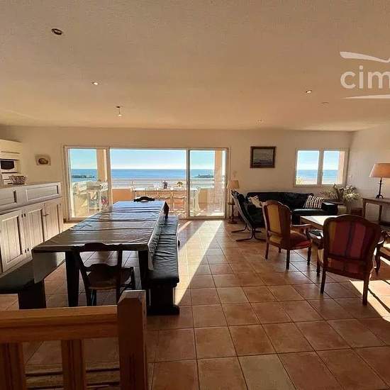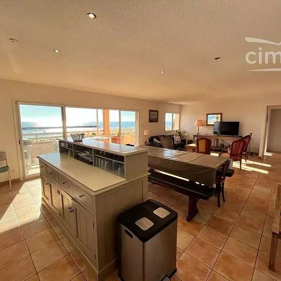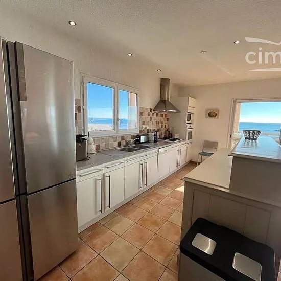 LOCATION SAISONNIERE: Venez séjourner dans cette grande villa lumineuse en bord de mer! Idéal pour 12 personnes, ce magnifique logement est composé comme suit: - Au rez-de-chaussée un spacieux séjour/cuisine tout équipée (cafetière Nespresso), 4 belles chambres, une salle d'eau et WC séparé, ainsi qu'une grande terrasse avec plancha, idéale pour profiter des beaux jours! - A l'étage se trouvent une 5ème chambre, une autre salle d'eau et un autre WC séparé. Vous avez également à votre disposition 4 places de parking. Vous voulez la plage à pi...
