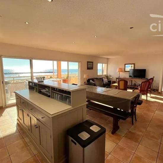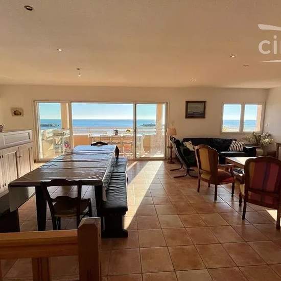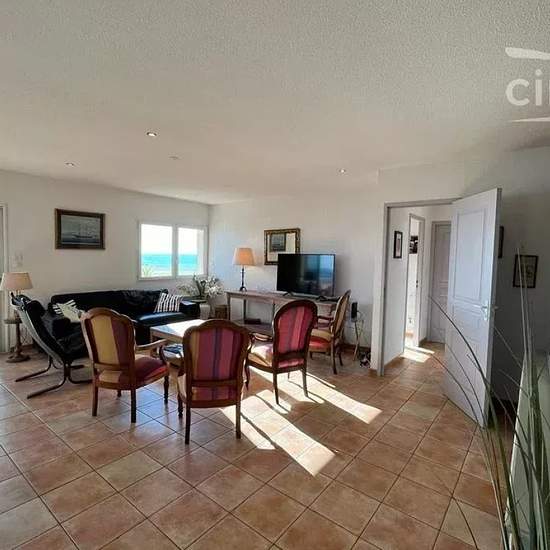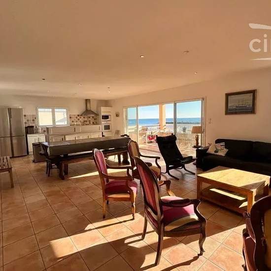LOCATION SAISONNIERE: Venez séjourner dans cette grande villa lumineuse en bord de mer! Idéal pour 12 personnes, ce magnifique logement est composé comme suit: - Au rez-de-chaussée un spacieux séjour/cuisine tout équipée (cafetière Nespresso), 4 belles chambres, une salle d'eau et WC séparé, ainsi qu'une grande terrasse avec plancha, idéale pour profiter des beaux jours! - A l'étage se trouvent une 5ème chambre, une autre salle d'eau et un autre WC séparé. Vous avez également à votre disposition 4 places de parking. Vous voulez la plage à pi...