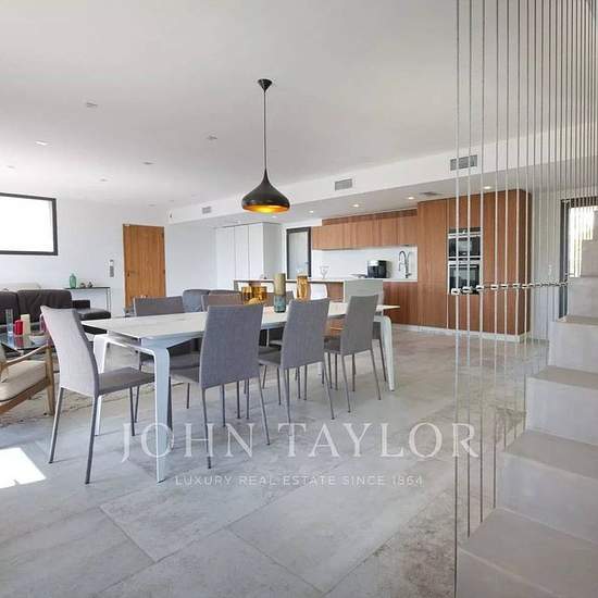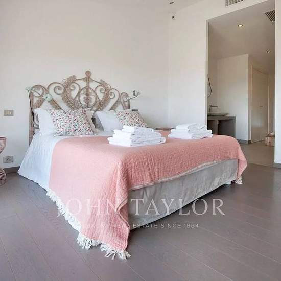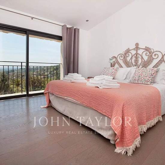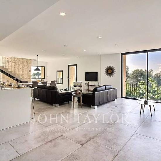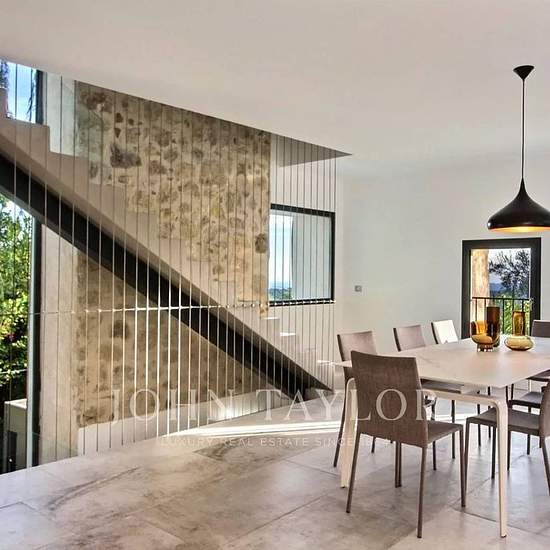 Cette superbe bergerie ancienne de 230 m² environ, entièrement rénovée dans un style contemporain et épuré, offre un charme authentique avec une vue imprenable depuis les hauteurs de Vence. Située dans un cadre privilégié, la propriété bénéficie d'un vaste jardin paysager et d'une grande piscine élégante. La villa dispose de 4 chambres spacieuses, chacune avec sa salle de bains/douche privative. La suite parentale, située au niveau du jardin, s'ouvre sur un espace verdoyant, tandis que les 3 chambres de l’étage sont accessibles par un élégan...