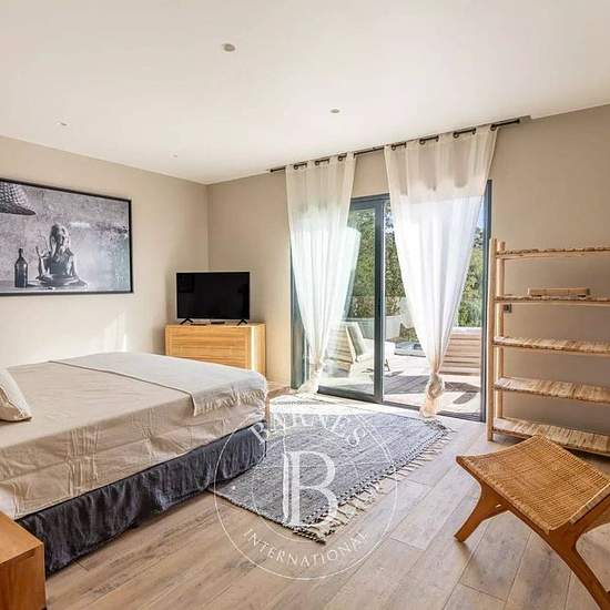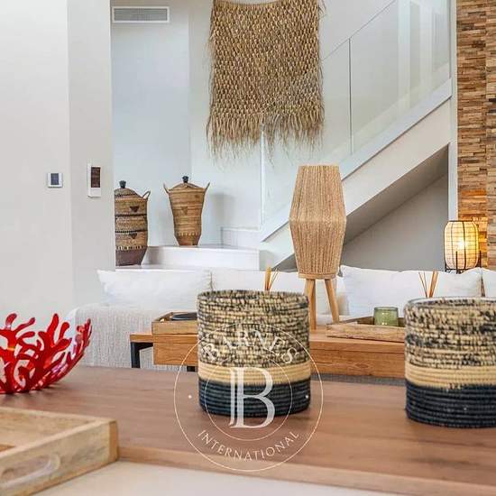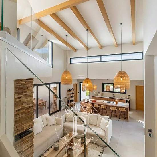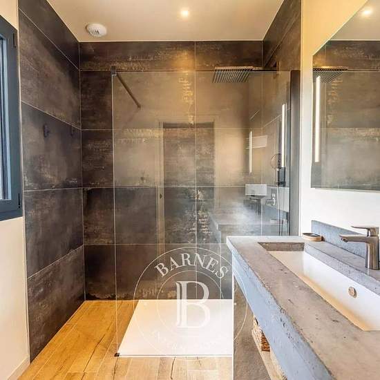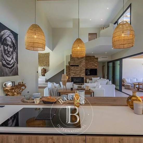 Située dans un Domaine privé, villa récente d'environ 230m², à 900 mètres à pied de la plage de Saint-Cyprien. La villa comprend une large pièce de vie, une salle à manger, une cuisine ouverte ainsi qu'une arrière cuisine. L'étage principal se compose de 4 chambres, toutes avec salle de douche attenante. Une 5ème chambre master est disponible à l'étage, avec salle de bain et spacieuse terrasse. La villa est érigée sur un terrain paysagé, avec piscine (chauffée hors juillet août) et cuisine d'été. Prestation luxueuses, domaine privé, plage du...