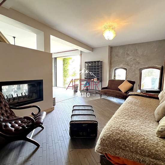 À 15 min de la douane de Croix de Rozon, 30 min du centre de Genève et de l'aéroport, sur le Salève au col de la Croisette 74560 La Muraz, au pied des pistes de ski de fond et des sentiers raquettes et piétons, bel appartement dans un corps de ferme, offrant un panorama exceptionnel sur le Mont-Blanc. Facile d'accès depuis Monnetier-Mornex ou Collonges sous Salève. Appartement triplex de 7 pièces en rez de jardin, location meublée offrant une cuisine entièrement équipée, une pièce de vie avec cheminée double foyer, une salle de douches hamma...