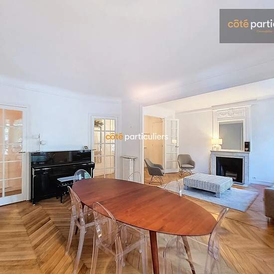 A propos de ce bien L'agence Côté Particuliers vous propose dans le quartier Auteuil au niveau de la porte Molitor ce superbe appartement familial meublé de 7 pièces de 142.50m2 au 1er étage avec ascenseur d'un bel immeuble haussmannien sécurisé aux parties communes soignées Il comprend une entrée, un vaste séjour et salle à manger, une chambre ou bureau, une cuisine dinatoire séparée aménagée et équipée, un dégagement avec rangement. L'espace nuit se compose de 4 chambres dont 1 avec sa salle d'eau, d'une SDB, une SDE avec machine à laver ...