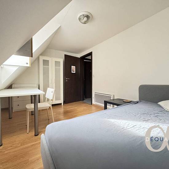 Shared flat – 5 bedrooms – Krutenau This 5-bedroom shared flat is located on the 3rd floor of a building at 13 Rue des Bains, in the heart of Strasbourg. The apartment is ideally located, close to shops, public transport and universities. It includes an equipped kitchen open to the living room and a shower room with a washing machine and toilet. All five bedrooms are available, each furnished with a bed, desk, chair and wardrobe. The property is rented under a joint lease, which means all the rooms are grouped under a single contract. The re...