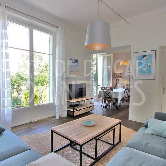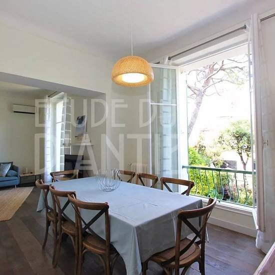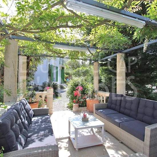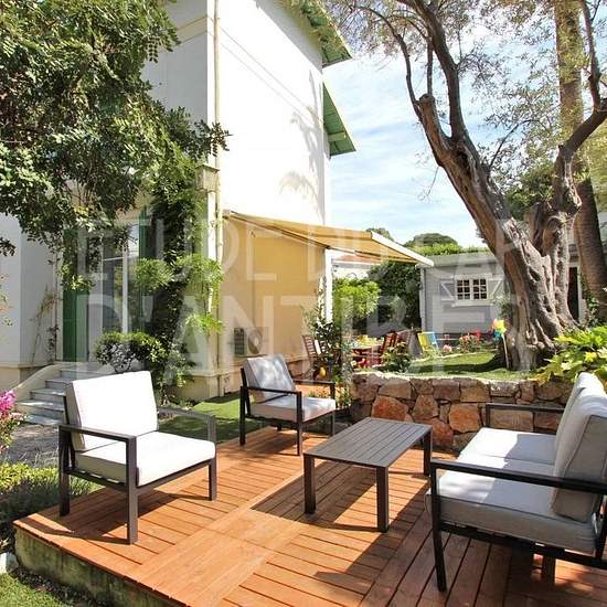 This very charming town house is ideally located at the beginning of the Cap d'Antibes, in a quiet area. No need for a car—you can do everything on foot. The 160 m² house, set in the middle of a 600 m² Mediterranean garden, comprises a living room open to a dining room, an equipped kitchen, a laundry room and a large walk-in closet on the mezzanine, plus a guest toilet. Upstairs there are three bedrooms with one shower room and a separate WC. In the garden there is a small outbuilding equipped with a shower room and a kitchen (with a sofa be...