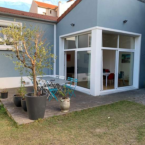 Les Agents de l'Immobilier vous proposent cette Maison pleine de charme d'une surface totale de 200m² environ avec un joli Jardin de 350m² environ bien exposé et sans vis à vis, situé à proximité de la rue des Bourguignons. En parfait état, cette maison MEUBLEE vous offre au rez-de-chaussée une Entrée, un double Séjour avec de beaux volumes de 37m², orienté Ouest et ouvert sur sa terrasse dînatoire, une Cuisine américaine équipée, un deuxième Salon, un Bureau, des WC invités et une Buanderie. Au 1er étage : 2 Chambres dont une Suite parental...