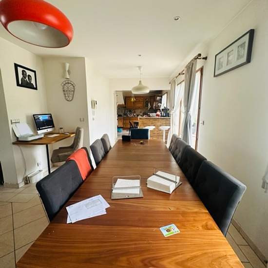 Dans quartier pavillonnaire, proche centre ville, pavillon individuel de 125 m² habitable, meublé, vous offrant au RDC une entrée, une cuisine USA aménagée équipée, un séjour donnant sur un belle terrasse avec coin barbecue, un salon avec cheminée insert, une chambre, une salle d'eau, un wc. A l'étage un palier desservant 4 chambres et un bureau, une salle de bains avec wc. Sous sol total avec garage. Ainsi qu'une cave à vin.. Le tout édifié sur 568 m² de terrain paysagé. Possibilité de retirer les meubles si vous n'en avez pas l'utilité. Di...