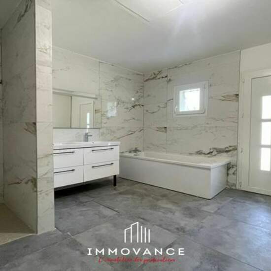 CASTELNAU-LE-LEZ - Située dans un environnement arboré, à moins de 10 minutes d'une école maternelle, crèche, tramway (ligne 2) et de toutes commodités. Maison sept pièces entièrement rénovée et meublée d'une surface habitable de 186m2 environ de plain-pied comprenant une entrée, une pièce de vie spacieuse de 80m2 avec une cuisine entièrement équipée, quatre chambres de plus de 11m2, un bureau, une salle de bain (WC, douche, baignoire) et une salle d'eau (WC et buanderie). Sur une parcelle de 1100m2 sans vis-à-vis avec un double garage de pl...