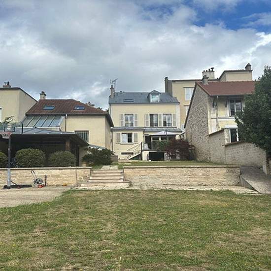 Située dans le vieux Croissy en bords de Seine et à quelques minutes du rer et du Centre-ville ,Belle maison de Maitre de 160 m² habitable (215 m² au sol) se déployant sur 3 niveaux avec un grand jardin et terrasse . L'entrée avec porte classée dessert une pièce salle à manger ou bureau , s'ensuit un séjour avec terrasse ombragée et cuisine dinatoire moderne , des wc invités ; au 1er étage une chambre avec placard , salle de bains et wc , une 2ème chambre avec armoires ,salle de douche, double vasque et wc . Au 2ème étage 2 chambres, une sal...
