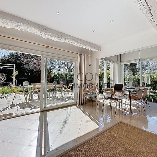 We offer furnished rental on the hill of Falicon, for a duration of 12 months starting from the end of July 2026, a charming family villa located in a quiet and desirable environment. With an area of over 200 m², this property is built on a plot of about 1,000 m², facing south and west, ensuring optimal brightness throughout the day. On the ground floor, the villa features an entrance leading to a large living room with dining area of over 74 m², open onto a terrace and the garden, a fully equipped open kitchen, a fireplace area, an office, ...