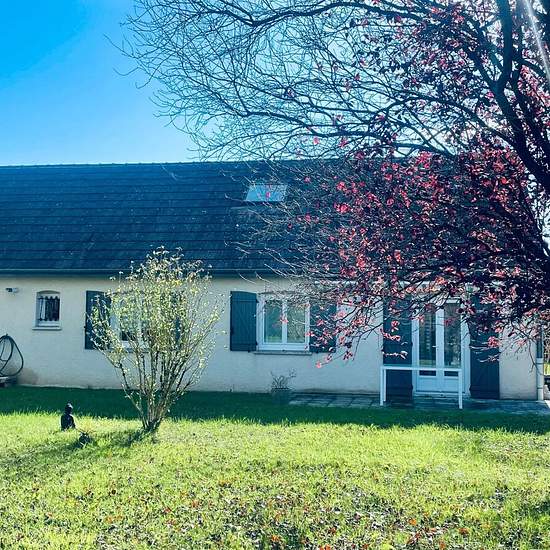 Maison individuelle d?une surface habitable de 145 m², située sur la commune de Gergy, entre Chalon-sur-Saône et Beaune, implantée sur un terrain arboré. Le bien se compose, au rez-de-jardin, d?une entrée, d?un salon-salle à manger, d?une cuisine, de deux chambres, d?une salle de bain avec baignoire, d?un WC indépendant, d?une buanderie (avec chaudière) ainsi que d?un garage attenant. À l?étage, accessible par escaliers depuis l'entrée, une mezzanine dessert deux chambres ainsi qu?une salle d?eau équipée d?une douche neuve et d?un WC. Le log...