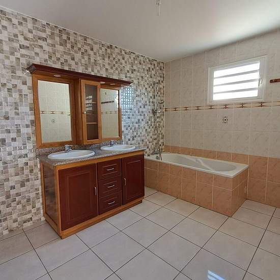 À louer une maison mitoyenne F4 en duplex de 107 m² non meublée sur le secteur de La POSSESSION. Au R.D.C: Elle comprend une cuisine équipée et ouverte donnant sur un séjour/salle à manger d'environ 22.50 m2 avec un WC indépendant, une salle de bain, une chambre climatisée. À l'étage: 2 chambres d'environ 12 m2 chacune, une salle de bain comprenant une baignoire et un vasque + WC indépendant + dressing individuel, une grande terrasse Au sous sol : 2 grands bureaux + un très grand garage (pouvant accueillir au moins 3 voitures) À l'extérieur:...