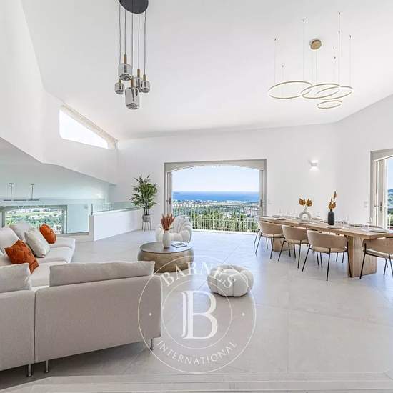 Mandelieu-la-Napoule : spacieuse villa de 300 m² à la vue mer panoramique. Idéalement située sur les hauteurs de Capitou, à 10 minutes des plages et du port de la Napoule, très agréable villa en position dominante bénéficiant d'un ensoleillement tout au long de la journée. Parfaitement au calme et sans vis-à-vis, entièrement rénovée, elle dispose d'un séjour avec cuisine américaine de plus de 140 m² ouvrant sur une terrasse avec cuisine d'été ainsi qu'un espace piscine. La villa dispose de 4 chambres, de 3 salles de bains, d'une cave à vin, ...
