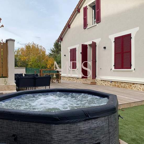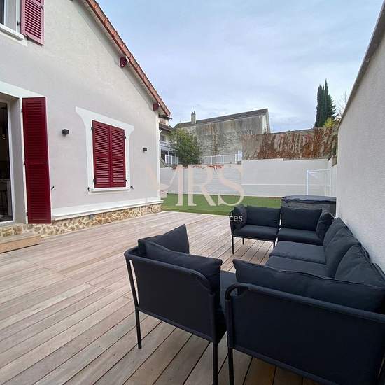 Maison familiale meublée 166m2- limite Saint-Germain-en-Laye, à proximité du Lycée International Située au cœur d'un charmant village limitrophe de Saint?Germain?en?Laye, cette maison des années 30 de 166,92 m2 entièrement rénovée en 2025 et lumineuse offre un cadre de vie privilégié, alliant le charme de la campagne à la proximité immédiate des commodités et des écoles réputées. À seulement 30 minutes de la place de l'Étoile à Paris, la propriété bénéficie d'un environnement calme et verdoyant, tout en étant proche des commerces (pharmacie,...