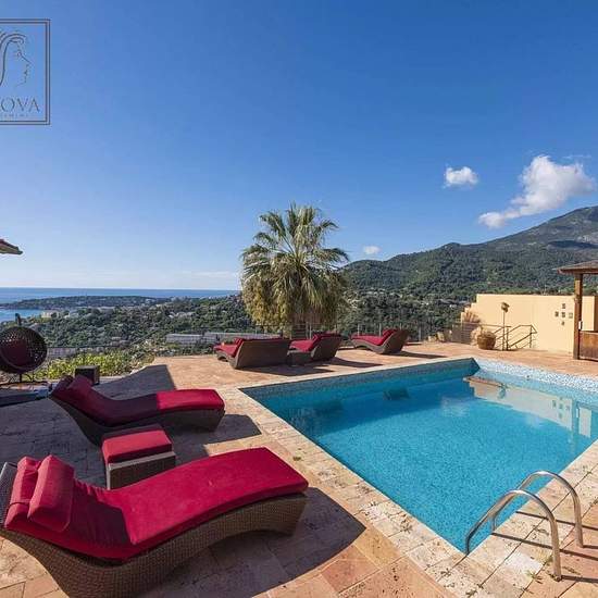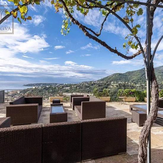 Location Meublé – Résidence secondaire d’exception – 9 000 € / mois Perchée au sommet d’une colline avec une vue imprenable sur la Méditerranée et les montagnes, cette demeure du XIXe siècle offre un cadre rare et prestigieux, à seulement 20 minutes de Monaco. Sur une parcelle de 1 840 m², la propriété se compose de plusieurs habitations indépendantes de plain-pied, pensées pour allier luxe, confort et intimité. La villa principale séduit par ses volumes généreux : vaste salon baigné de lumière, bureau élégant, salle à manger conviviale et c...