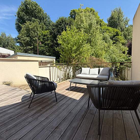 MONTMORENCY CENTRE. L'immobilière vous propose à la location cette maison 7 pièces de 156 m2 entièrement rénovée avec goût située à 10 min à pied du centre ville de Montmorency vous offrant: entrée, cuisine entièrement équipée ouverte sur salle à manger donnant sur terrasse, séjour, 4 chambres, bureau, salle de bains, salle d'eau, 3 wc, combles aménagés ainsi qu'un sous-sol total avec garage et buanderie. Le tout sur 222 m2 de terrain sans vis-à-vis. Aucun travaux à prévoir. BAIL MEUBLE. DISPONIBILITE 1ER JANVIER 2026.