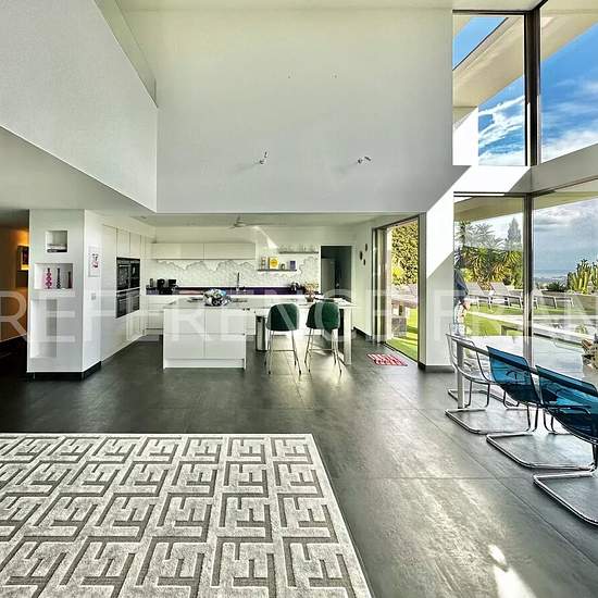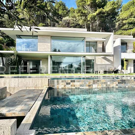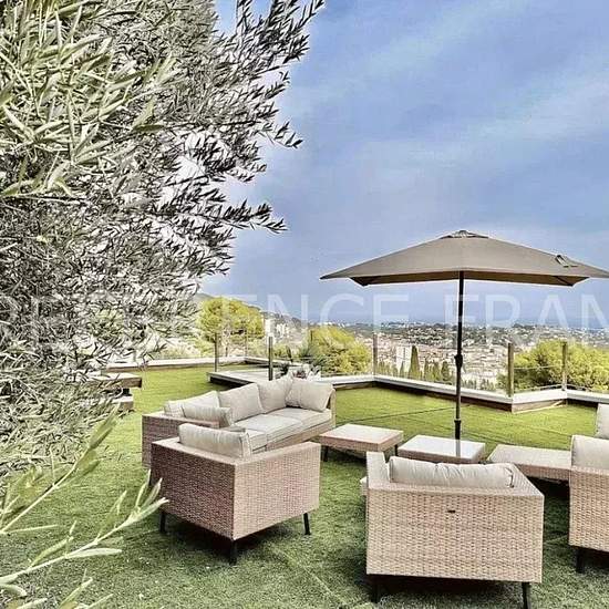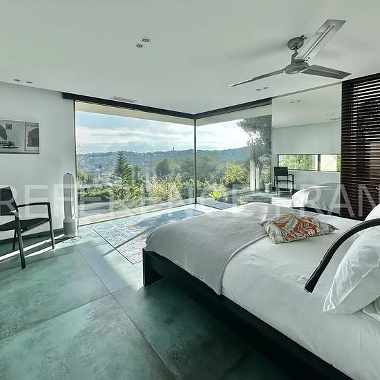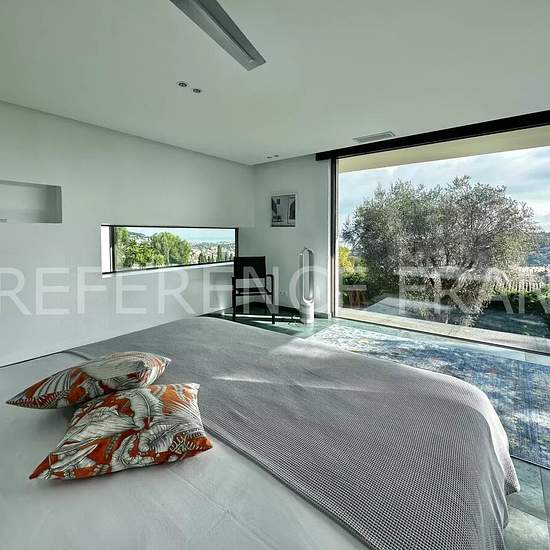 NEAR MOUGINS SCHOOL. AVAILABLE - for 10 months FROM September 1, 2025 to June 30, 2026 at a price of €13,000* per month - OR for 12 months (renewable) from September 1, 2025 at a price of €16,000* per month. Prices include garden and pool maintenance. Sea view. Located in a dominant position on the heights of Vallauris. Superb contemporary villa with a surface area of 250 m² built on 2,000 m² of landscaped grounds with an infinity pool, rooftop, fitness area, cinema, sauna, and a 50 m² garage. Fully air-conditioned and equipped with underflo...
