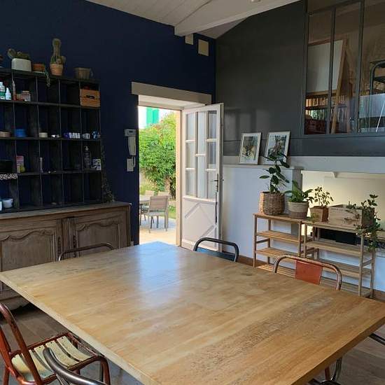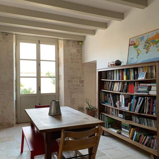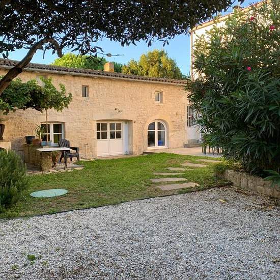 Maison de charme en coeur de village de Rivedoux Plage, offrant, une salle à manger, une cuisine aménagée et équipée, une arrière cuisine buanderie, deux espaces salon, un wc, une salle d'eau A l'étage, quatre chambres, trois salle d'eau, wc, une mezzanine offrant un espace supplémentaire Un jardin avec murs en pierre, stationnement. Louée meublée. Charges ordures ménagères incluses.