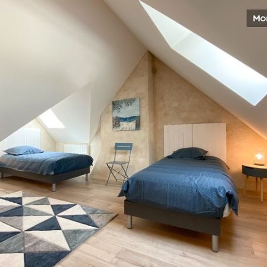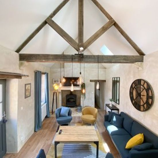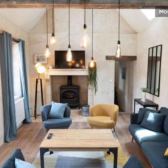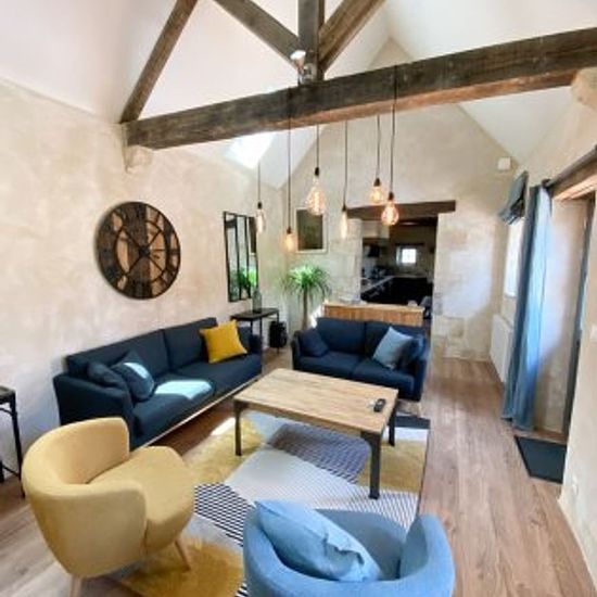 Charming house fully renovated and equipped to a high standard, comprising two separate wings for the bedrooms, ideal for peace and quiet, in the heart of the Perche regional park, 1? hours from Paris by car or train. Nestling on the heights of the small, very peaceful village of Condeau. Well-equipped kitchen with an electric Eno griddle King Size bed (180), wooden terrace opening onto the living room and kitchen, attached garage for bikes, car... Godin stove and latest-generation independent electric heating system for each room in the hou...