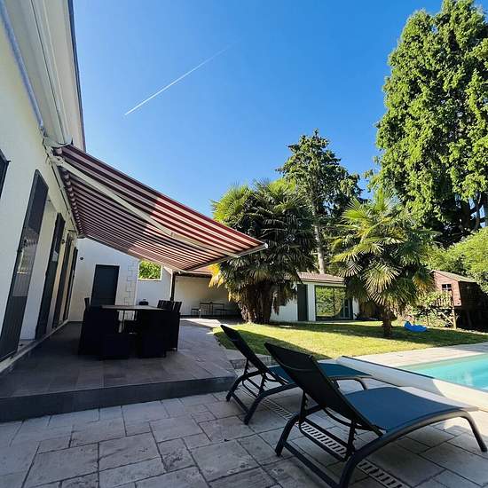 Belle Villa de 200 m2 avec piscine privé à 5 minutes à pied des commerces et restaurants Vous serez à 3km de Disneyland et de la gare de Marne la Vallée, vous pourrez facilement vous y rendre en bus (ligne 34 et 47) en 10 minutes. Vous pourrez rejoindre Paris en 35 min. Emplacement idéal pour venir passer un moment en famille ou entre amis à proximité des principales activités de la région ( Parc Disney, Paris, Val d'Europe , la Vallée village , ranch Davy croquet, village nature , accro branche) La maison dispose d'une belle terrasse aménag...