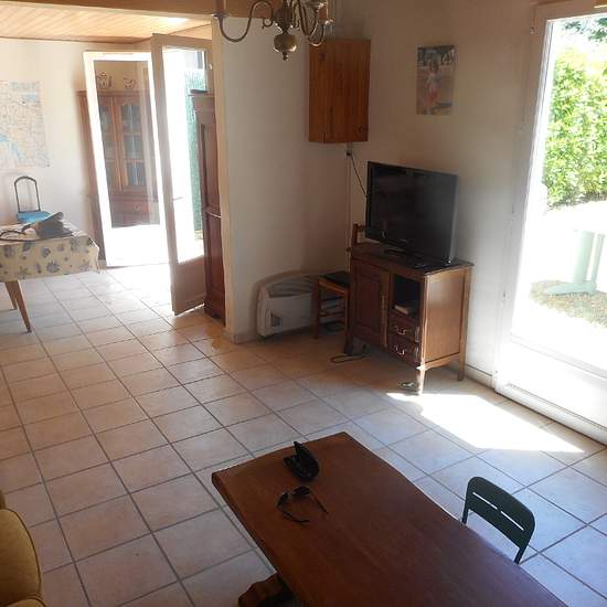 Maison mitoyenne d'un côté, comprenant: cuisine (lave-vaisselle, micro-ondes, four, gazinière), séjour(TV), 1 chambre RDC (lit 140), salle-d'eau, WC séparé, dégagement avec lave-linge et frigo-freezer. A l'étage: 2 chambres avec 1 lit 140, 2 chambres avec des lits supersposés (2x2), 1 WC Douche extérieure, terrasse Couchages: 10 personnes + matériel bébé Jardin avec salon de jardin et bbq, entrée voitures. Surfaces et distances données à titre informatif et non contractuel. Ces prix s'entendent consommations incluses en saison. Taxe de séjou...