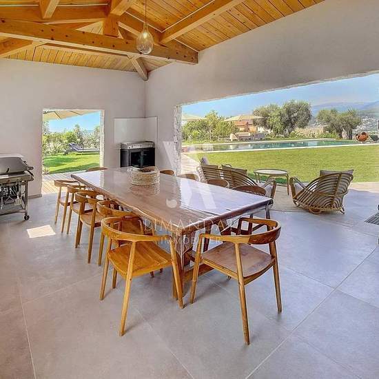 Sur les hauteurs de Saint-Paul-de-Vence, au sein d’un domaine privé, cette villa de 200 m² a été entièrement rénovée avec soin. Grâce à son exposition triple Sud-Ouest-Est, elle offre une vue imprenable sur le village pittoresque. Idéalement située à seulement dix minutes des commodités, elle peut accueillir jusqu’à huit personnes dans le confort de ses quatre chambres en suite. Son élégante décoration mêle authenticité et modernité, créant une atmosphère chaleureuse en parfaite harmonie avec l’esprit du village. Les espaces de vie et les ch...