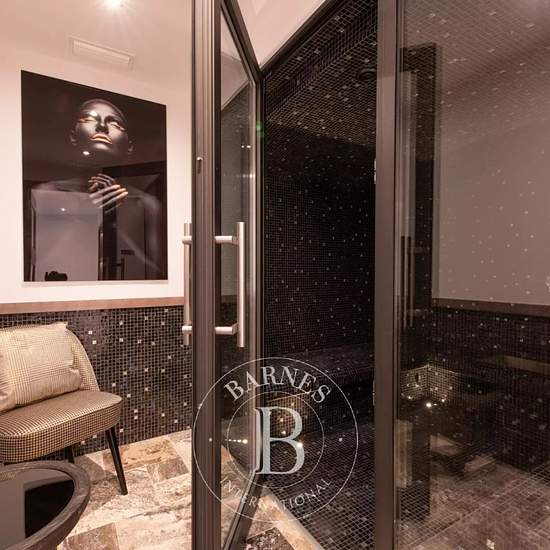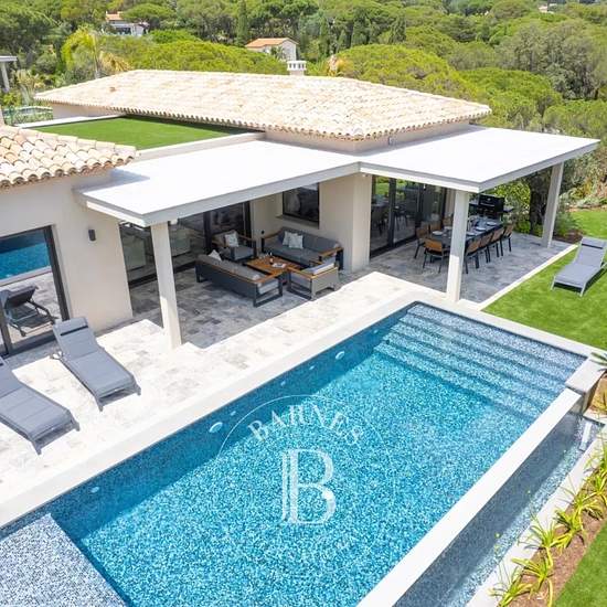 * Villa Louis * Located in a quiet, residential area, this new, modern property of approximately 290 m² is close to the beaches of La Nartelle. On the ground floor: a spacious, bright living/dining room, a fully equipped kitchen with a cold storage room, and three en-suite bedrooms. On the lower level: two en-suite bedrooms each with a shower room, a hammam, and a laundry room. Outside: large fitted terraces, a heated infinity pool (on request and at extra cost), barbecue, a pétanque court, an outdoor shower, and a garage. Features: Air cond...
