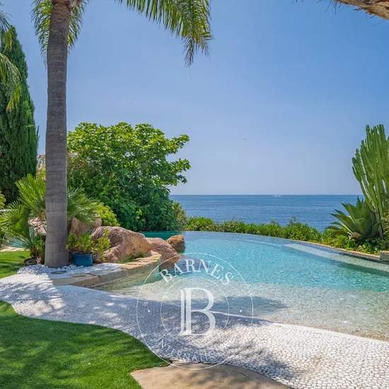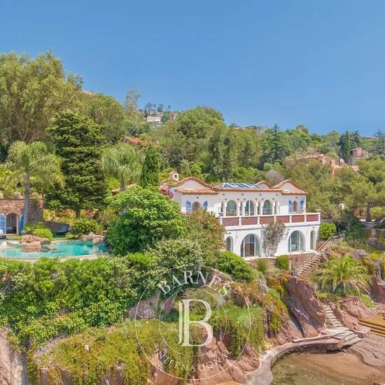 Théoule-sur-Mer : Superbe villa pied dans l'eau de 300 m². À seulement 15 minutes de Cannes, cette somptueuse propriété nichée dans une crique à l'abri des regards vous offre calme et sérénité tout en étant à proximité des commodités. La villa dispose de multiples accès privés à la mer, d'un ponton privatif, d'une plage de galets ainsi que d'une terrasse en teck donnant sur la plage. La propriété est composée d'une villa principale, d'une piscine chauffée et décorée, d'un pool house avec un bar d'été et une suite invités, ainsi que d'une mai...