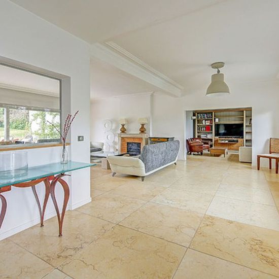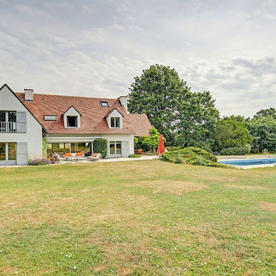 Tout près des axes A13 et A14, du Campus du PSG, des écoles primaires, collèges et du lycée très prisé Notre-Dame Les Oiseaux à Verneuil, ainsi que de Saint-Germain-en-Laye et de sa forêt, cette maison vous offre un cadre de vie agréable, comme à la campagne, belle maison bâtie en 1974 entièrement rénovée de 212 m2 habitables et 352 m² au sol sur 4.200 m2 de terrain sans vis a vis au calme absolu avec belle piscine extérieure chauffée de 4.5 X 12.5 M chauffée et pergola avec cheminée. Au rez-de-chaussée : Vaste entrée donnant sur triple réce...