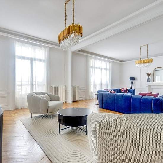A propos de ce bien 75008 – Location meublée – Parc Monceau / Ternes•Appartement d'une surface de 280 m², situé Boulevard Courcelles au 2? étage d'un bel immeuble haussmannien entièrement rénové et meublé. Il se compose d'une spacieuse salle de réception de 53 m² incluant séjour et hall d'entrée, avec une hauteur sous plafond de 3,05 m et de grandes fenêtres. Un balcon filant, exposé nord-ouest et ouvrant sur le séjour, offre une vue dégagée sur le boulevard. L'appartement comprend également une salle à manger circulaire, une cuisine indépe...