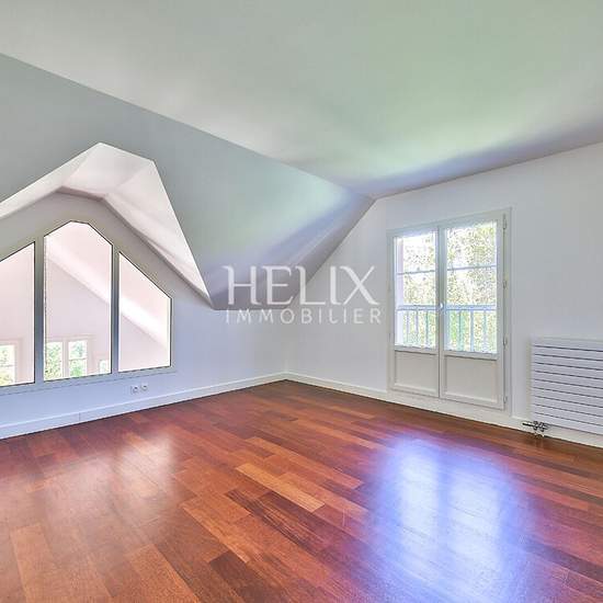 A propos de ce bien Maison d'exception 240 M² environ rénovée à neuf, au calme absolu, à proximité immédiate de Saint-Germain-en-Laye, du Lycée International et des axes A13/A14. Superbes volumes avec un séjour de plus de 90 M² et une cuisine américaine contemporaine, entièrement équipée avec de l'électroménagers connectés de dernière génération, une buanderie avec un lave-linge et un sèche-linge, 4 chambres, 2 salles de douches et une salle de bains, pensées avec des matériaux de qualité. Deux jardins clos sans vis-à-vis, vue forêt et chev...